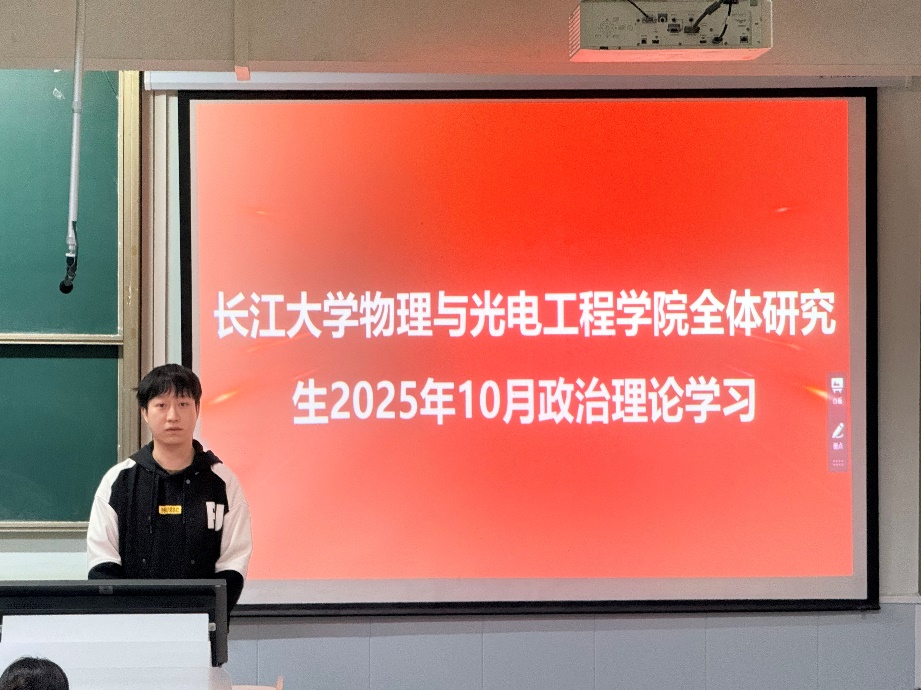(通讯员 李玮柯)10月25日,长江大学物理与光电工程学院在13教A103教室成功召开了10月研究生政治理论学习会议,我院全体研究生参会。本次学习围绕习近平总书记重要讲话、重要著作及相关政策文件展开,通过集中学习的形式,将学习成果融入教学、科研与求学实践。