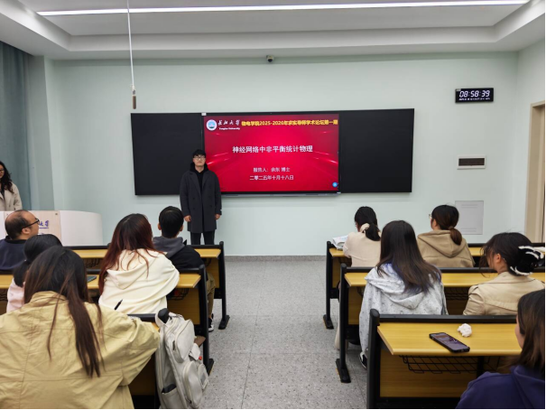 (通讯员 裴启明)10月18日上午8:30,物电学院2025-2026学年求实导师学术沙龙第一期在16教B102和B103教室举行。本次沙龙邀请了瞿祥炜博士和余东博士做学术报告。