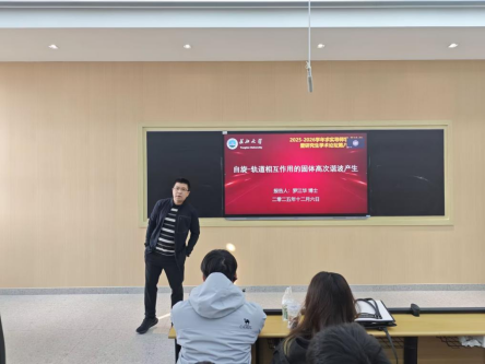 罗江华博士的报告题目是《自旋-轨道相互作用的固体高次谐波产生》。通过简要介绍光的对称性、不对称性及其在非线性光学和超快现象中的角色,引入一种固体高次谐波产生过程中轨道-自旋转换机制。我们证明了在固体环中引入工程化的间隙可以破坏光-物质系统的对称性,从而能够高效地将驱动光的轨道角动量(OAM)转化为发射谐波光子自旋角动量(SAM)。根据环隙的数量和宽度的不同,远场谐波呈现出交替的自旋态,其遵循双重选择定则,类似于经典的多缝衍射现象。由此产生的夫琅禾费衍射图样进一步揭示了耦合OAM-SAM动力学过程背后的n重旋转对称性。