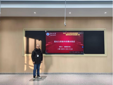 (通讯员 裴启明)12月27日上午8:30,物电学院2025-2026学年求实导师学术沙龙第十期在16教C107和C109教室举行。本次沙龙邀请了郁春潮博士、侯杰博士和高书芳博士做学术报告。