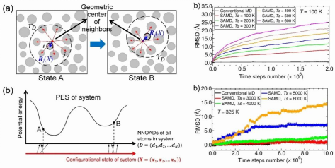 长期以来,传统分子动力学(MD)计算机模拟方法在材料科学与工程研究中被广泛应用,但其在时间尺度上的局限性阻碍了对许多重要材料演化过程(如相变、位错运动、晶界扩散等)的研究。为解决这一瓶颈,研究人员基于扩展系统动力学框架,发展出一种全新的、通用的模拟加速方法SAMD。