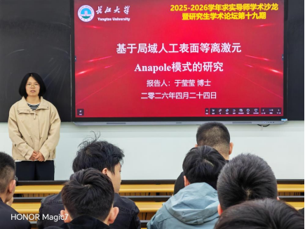 (通讯员 裴启明)4月24日上午8:30,物电学院2025-2026学年求实导师学术沙龙第十九期在16教B204举行。本次沙龙邀请了于莹莹博士做学术报告。
