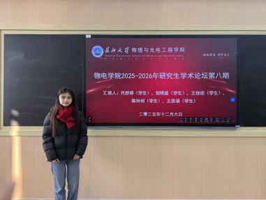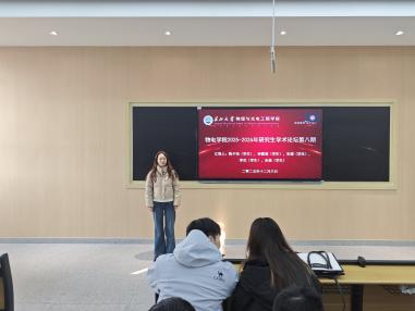 (通讯员 杨则宇)12月6日上午,物电学院于16教C210、C211 教室举办2025-2026学年第八期研究生学术论坛。10 名在读硕士研究生聚焦 OLED/PLED 显示、发光材料、水系电池、非线性光学等多个前沿领域分享研究成果,展现了扎实的科研素养与突出的创新能力。