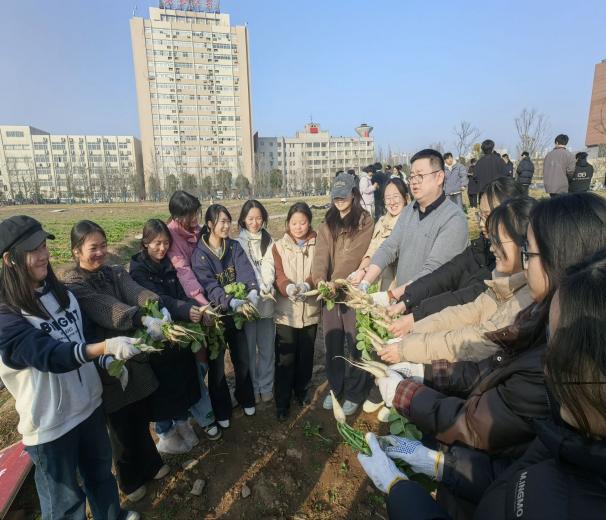 (通讯员:梁建军)1月6日下午,物电学院组织2025级本科生劳动先锋团在16教旁劳动教育实践基地开展萝卜采收活动,2025-2026学年第一学期劳动教育实践迎来圆满收官。