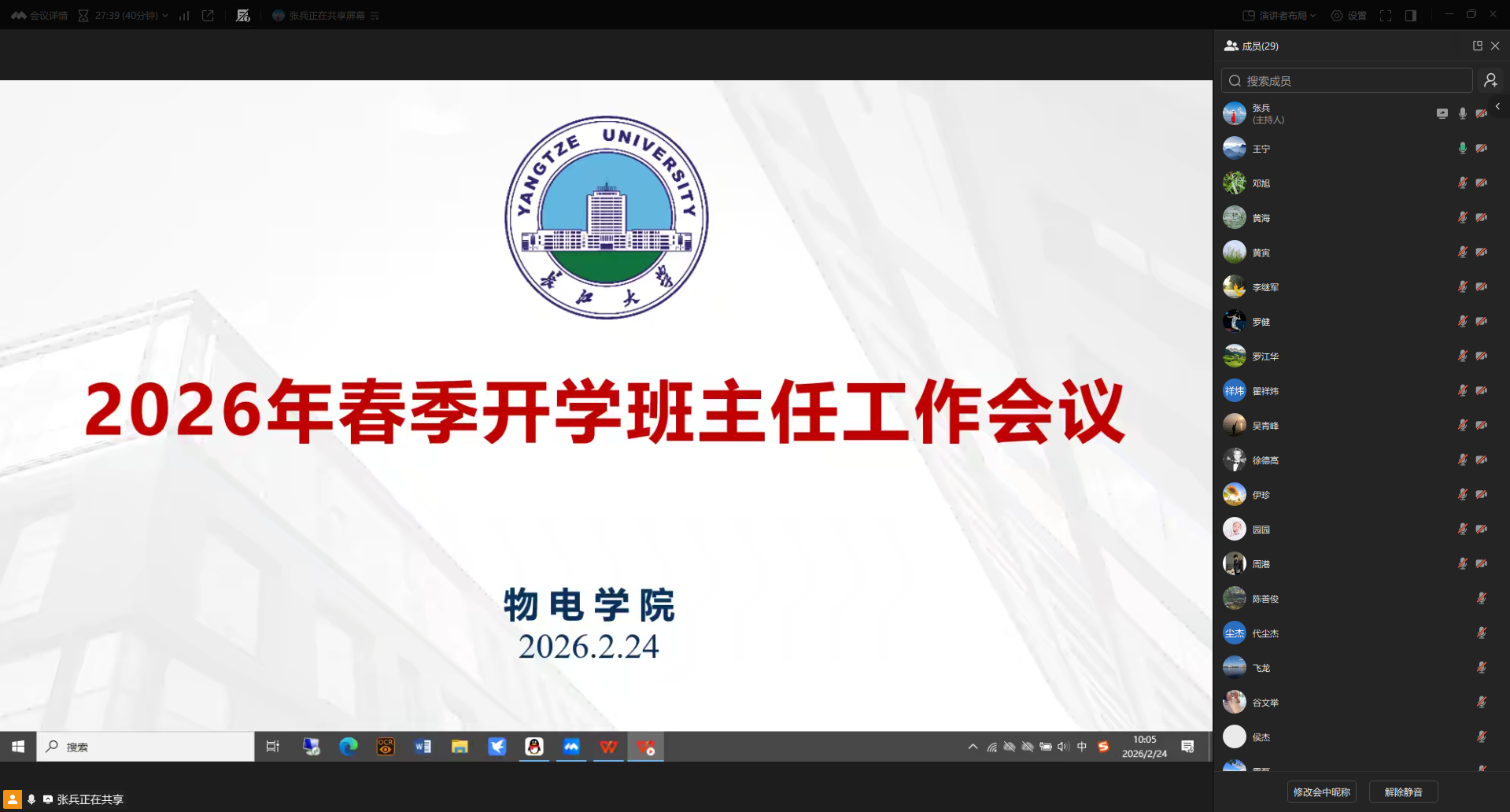 为确保学生返校及新学期学生工作平稳有序开展,2 月 24 日上午,物电学院线上召开春季学期开学班主任工作会议,学院党委副书记王宁主持会议,全体辅导员、班主任参会。