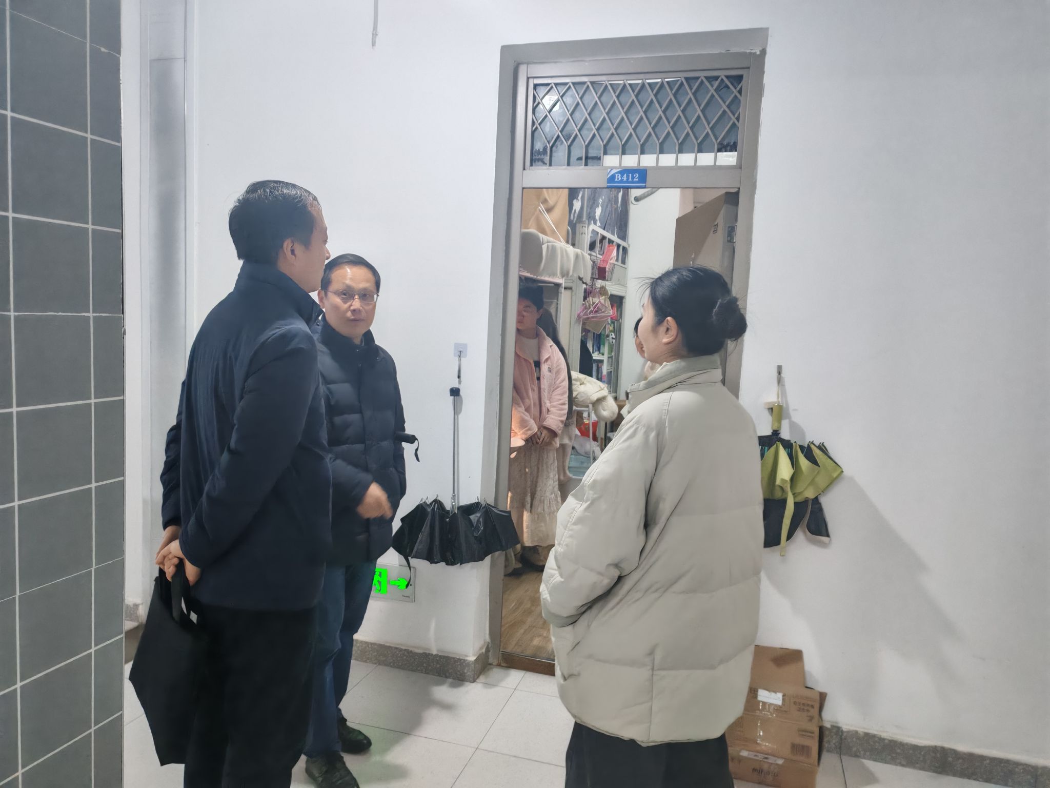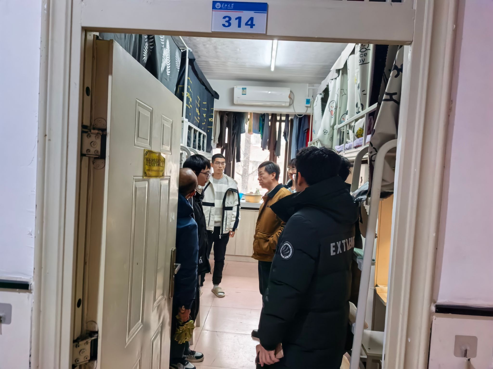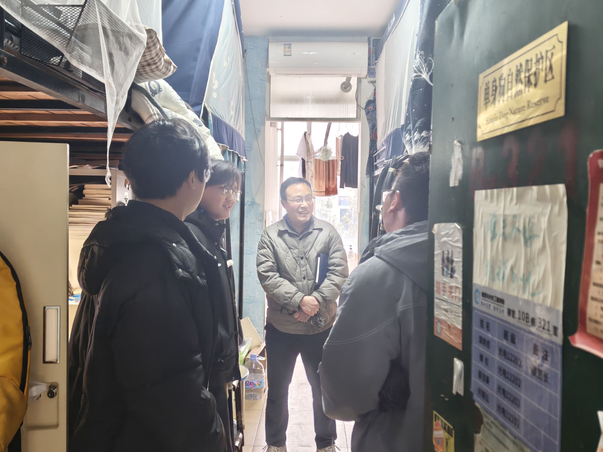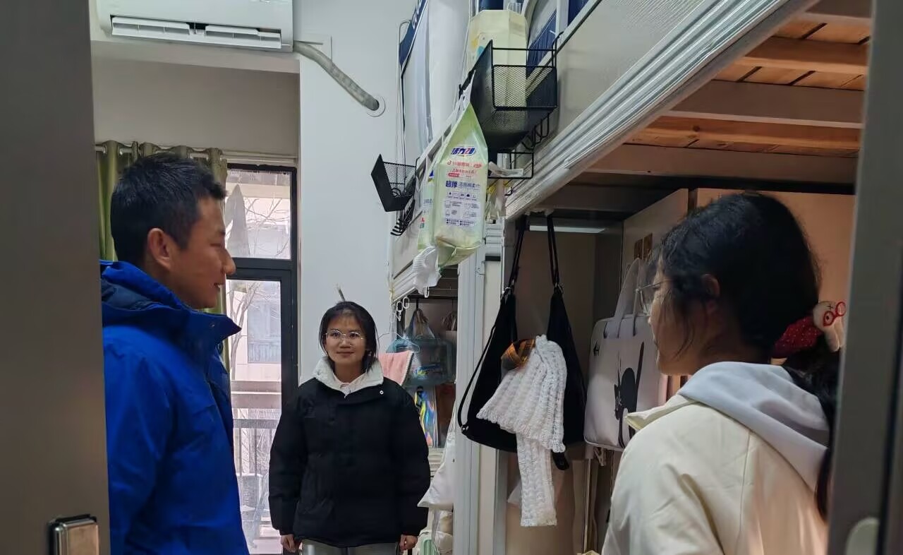 走访过程中,院领导和班主任们走进每一间宿舍,与同学们亲切交谈,细致询问大家的假期收获、返校感受以及新学期的学习规划,耐心倾听同学们在住宿环境、学业发展等方面的困惑与诉求,并现场为大家答疑解惑。同时,重点检查了宿舍用电安全、消防设施及内务整理情况,反复叮嘱同学们要增强安全防范意识,规范用电、杜绝违规电器,保持宿舍整洁通风,养成良好的生活习惯,互相关心、互相帮助,共同营造安全、和谐、文明的宿舍氛围。