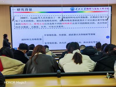 (通讯员 张依蒙)3月7日上午,物电学院在16教A109、A110室举办2026学年第十二期研究生学术论坛。论坛围绕材料力学、智能算法、量子光学、光伏能源、生物医学检测、超材料设计、新能源器件等多个前沿科研领域展开,搭建了跨方向学术交流平台,充分展现了学院研究生群体扎实的科研素养、创新的研究思维与过硬的学术能力,营造了浓厚的院内学术研讨氛围。