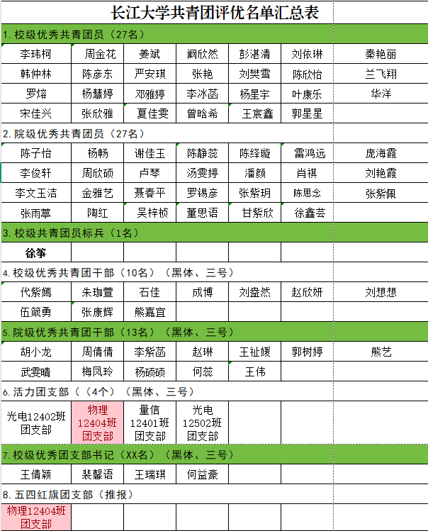 按照长大团函〔2026〕6号文件,以及物电学院关于开展2025年度共青团先进集体和个人评选工作的通知要求,经同学们自行申报,学院评议小组评定,现对评议结果公示如下: