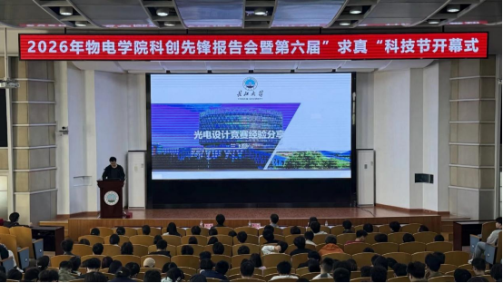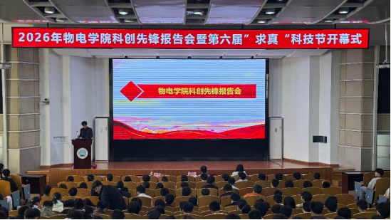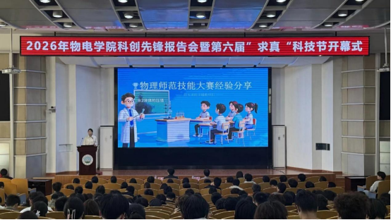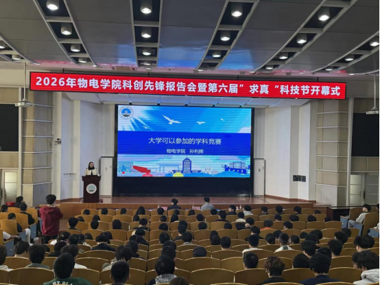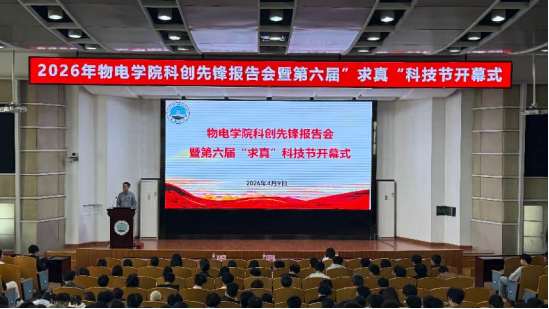 (拍摄:侯金杉 郭瀚 通讯员:胡艾芸)2026年4月9日,物理与光电工程学院科创先锋报告会暨第六届“求真”科技节开幕式在东校区12教405学术报告厅成功举行。本次活动以“弘扬科学精神,激发创新活力,赋能学科发展”为主题,旨在激发学生科创思维,营造学院科创氛围,引导学生积极参与科创实践。学院党委副书记王宁、量子信息科学专业负责人孙利辉与学生代表参加本次活动,本次活动由学院辅导员周港主持。
